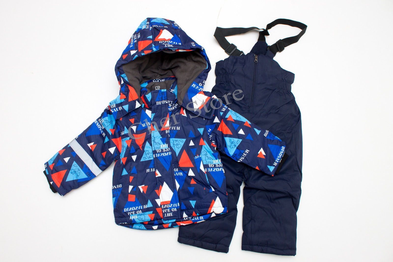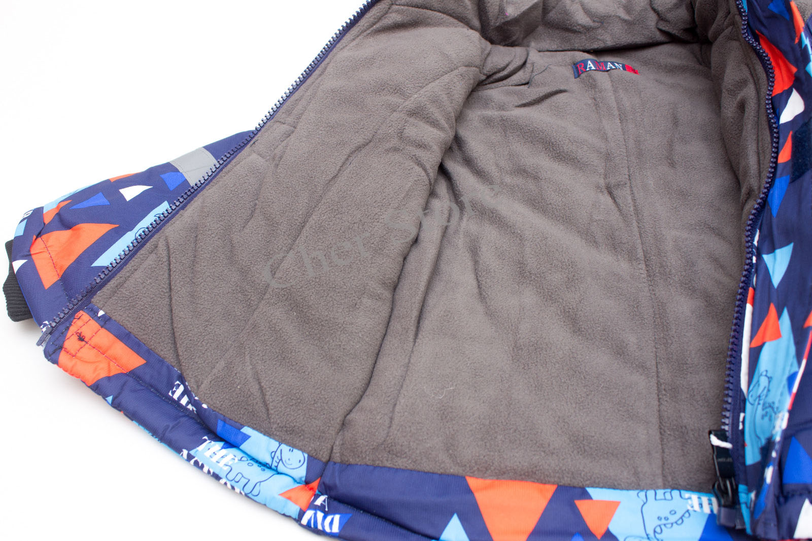Geaca este captusita cu vatelina si polar, pantalonii sunt captusiti cu vatelina.